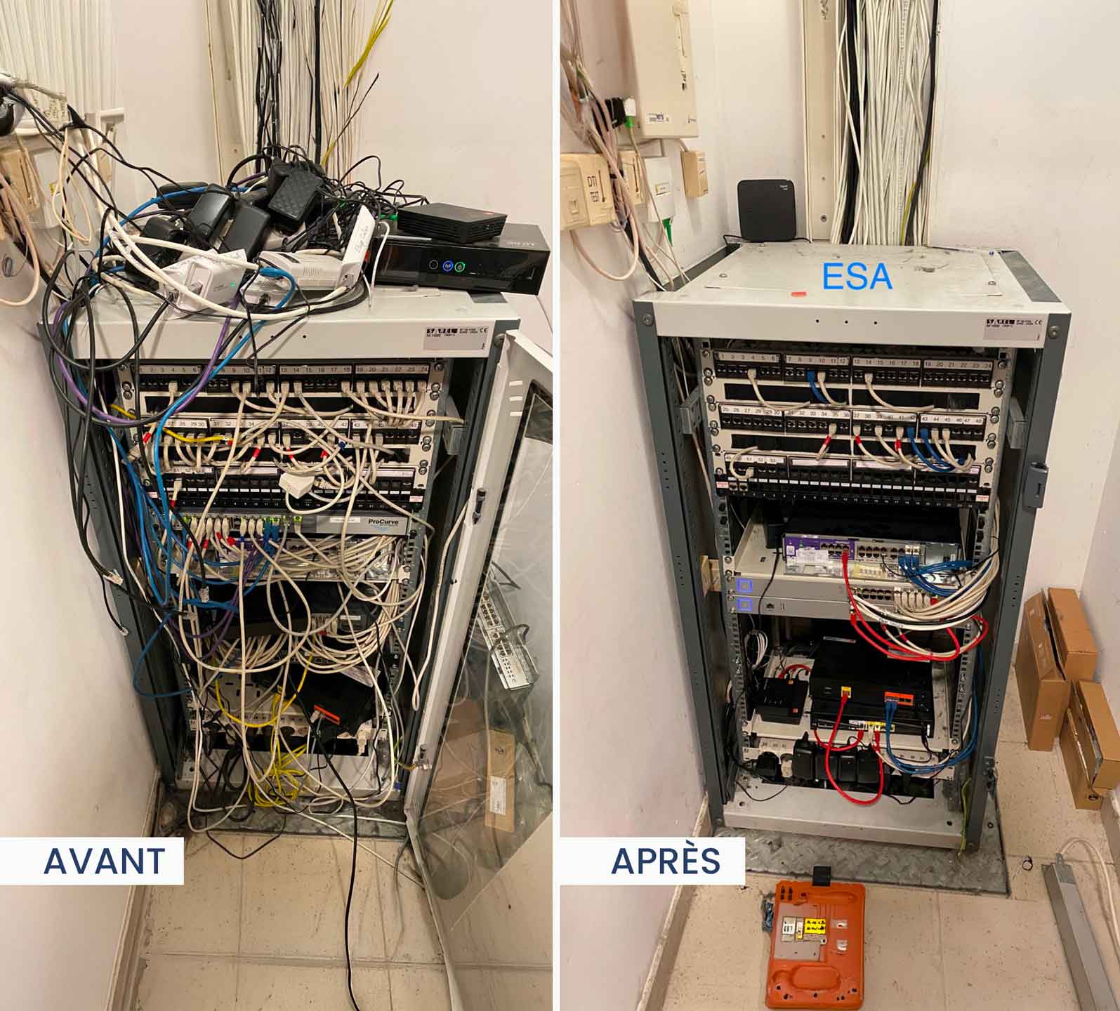 • Une installation physique soignée (câblage structuré, baies de brassage 19", routeurs professionnels).